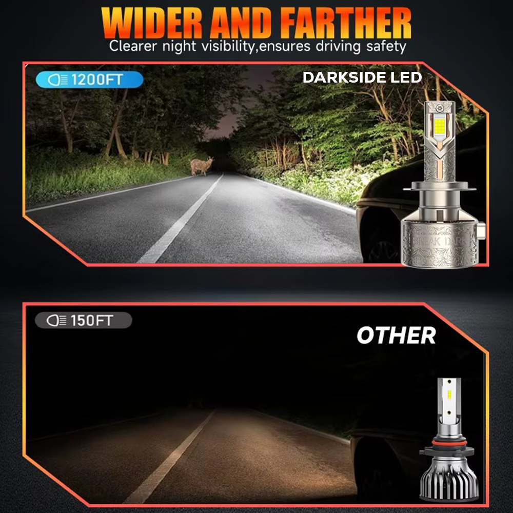 🌟 Experience a 700% Brighter Drive: Our DARKSIDE LED headlights feature advanced automotive-grade 3570 CSP LED chips, delivering an astonishing 15,000LM per set. These numbers represent the real watts and real lumens, and they shine 700% brighter than your stock incandescent headlamps. The 6000K cool white light not only enhances visibility but also replicates the feeling of driving in broad daylight, ensuring safer night driving. ⚡ Swift and Effortless Installation: Our DARKSIDE LED H1, H3, H4, H11, 9005 LED bulbs are engineered for faster installation. With an all-in-one wireless design, built-in driver, and a compact size that takes up minimal space in the headlight housing, you can enjoy a non-polarity plug-and-play experience that saves you valuable time. No extra modifications are needed. 🚗 Precise Illumination, Zero Glare: DARKSIDE LED headlights are designed with a 1:1 illuminate position, mirroring the lighting position of stock halogen bulbs. This meticulous design ensures an ideal beam pattern with no dark spots, blinding, or glare for oncoming drivers. Upgrading to LED headlights has never been this hassle-free. 🔥 Exceptional Lifespan: Crafted with a 6063 aviation aluminum body, a silent turbo cooling fan, and an efficient double-sided thermally conductive copper substrate structure, our LED headlights boast an optimal cooling system. This extends their lifespan to an impressive 50,000 to 100,000 hours, saving you from the inconvenience of frequent replacements. Upgrade to DARKSIDE LED headlights and illuminate your night drives with confidence and clarity. Say goodbye to dim and unreliable lighting – it's time to embrace the future of automotive illumination!" |