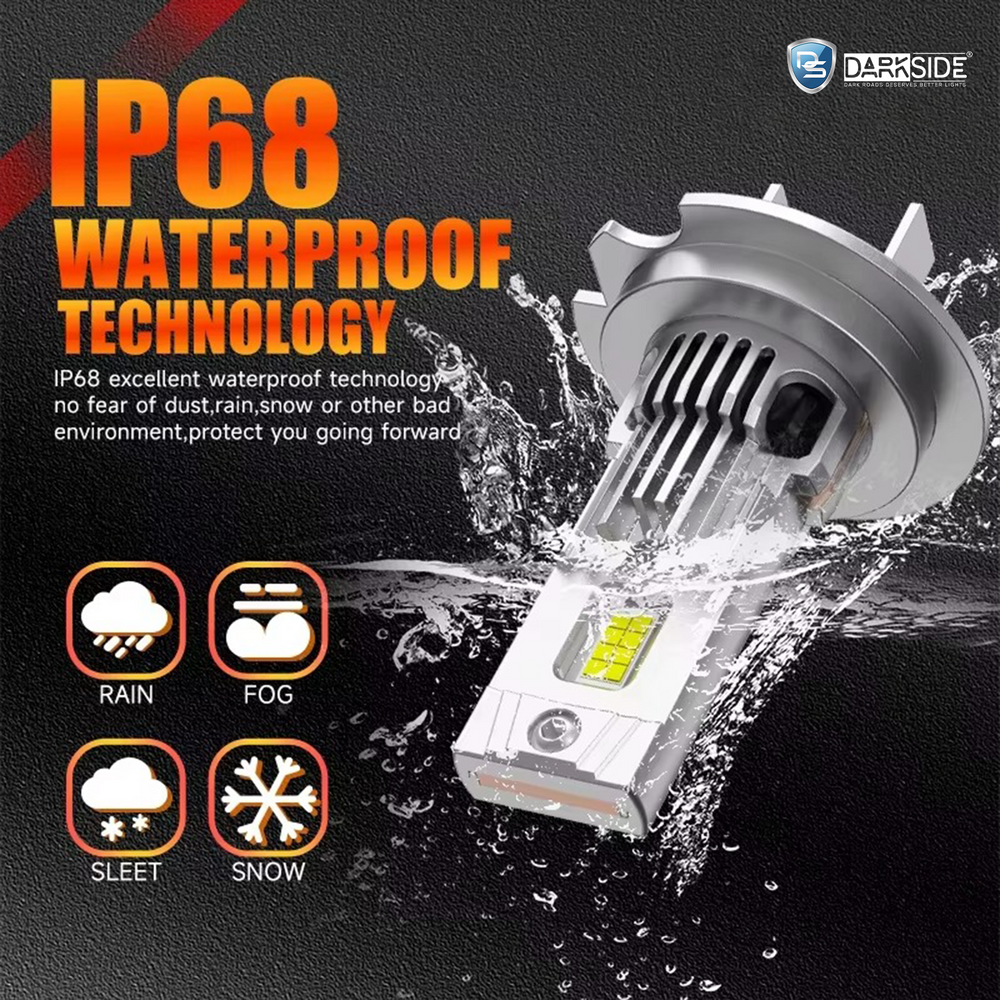 Exceptional Performance Regardless of Weather Conditions: The DARKSIDE LED H1, H3, H4, H7, 9005 LED headlight conversion kit, equipped with IP67 features, excels in challenging weather conditions, ensuring reliable performance in any climate. |