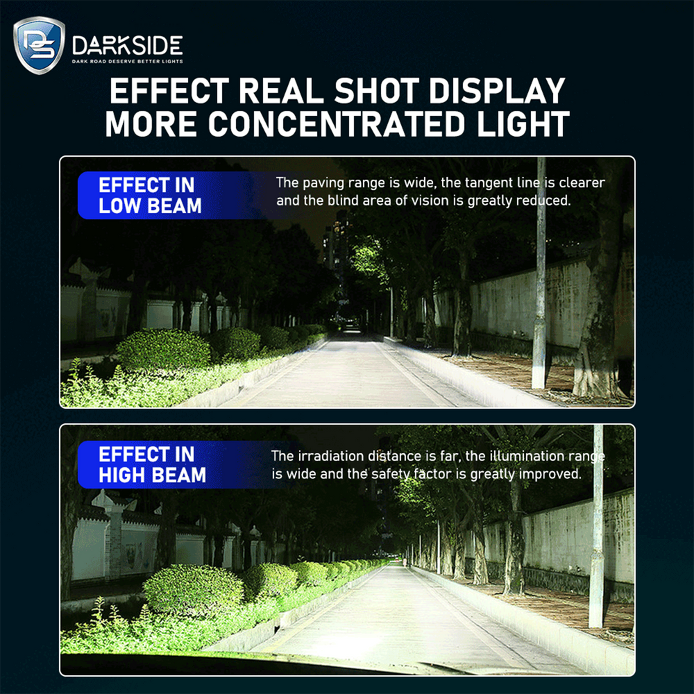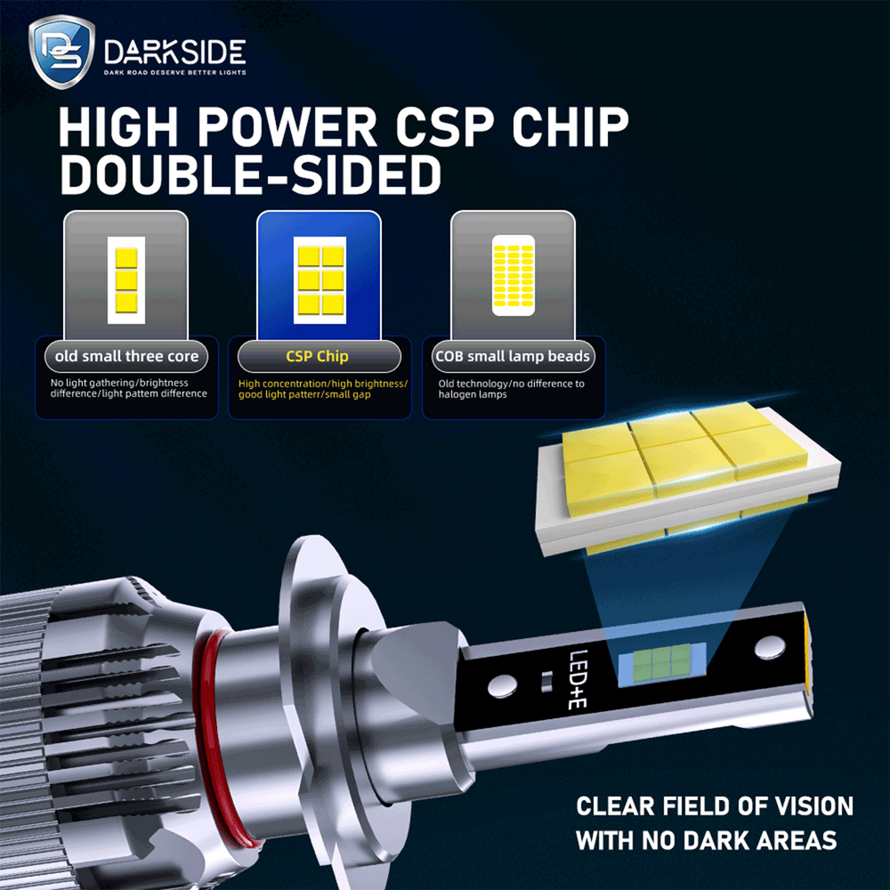 🌟 Explore the Brilliance of (DS-60) LED Headlights by DARKSIDE LED Unparalleled Brightness: DARKSID LED H1, H4/HB2, H7, H11, 9005/HB3, 9006/HB4, 9012/HIR2 LED Headlights Step into a new realm of illumination with the (DS60) LED headlights by DARKSIDE LED, equipped with automotive-grade 4575 12 core Large CSP LED chips that deliver an astounding 16000 lumens per set along with two copper tube. Experience a phenomenal 900% increase in brightness compared to standard incandescent headlamps. Emitting a cool 6500K light yellow, these LEDs not only restore the sensation of driving in daylight but also empower drivers to detect obstacles earlier, ensuring a safer night driving experience.. ⚡ Effortless Installation: Swift Upgrade with DARKSIDE LED H4, H7, H11, 9005 LED Bulbs Upgrade your vehicle seamlessly with DARKSIDE LED bulbs, featuring an all-in-one wireless design. These bulbs, equipped with a built-in driver and a smaller size to occupy less space in the headlight housing, offer a non-polarity plug for a quick 5-minute installation. Enjoy a true plug-and-play solution without the need for extra modifications. 🚗 Optimal Illumination Position: Drive Confidently with DARKSIDE LED Headlights Maintaining a 1:1 illuminate position design, DARKSIDE LED headlights replicate the lighting position of stock halogens. This meticulous design ensures an ideal beam pattern and clearer visibility, eliminating dark spots, blinding, or glare for oncoming drivers. Make the switch to LED headlights hassle-free for an enhanced driving experience. 🔥 Durable Lifespan: Engineered for Longevity Crafted with a complete 6063 aviation aluminum body, a silent turbo cooling fan, and an efficient double-sided thermally conductive copper substrate structure, DARKSIDE LED headlights boast an optimal cooling system. This design extends the lifespan of the headlights up to an impressive 30,000 to 50,000 hours, sparing you from the inconvenience of frequent replacements. Universal Compatibility: Perfect Fit for Your Vehicle DARKSIDE LED headlights feature a direct plug-in structure and are CANbus ready, ensuring compatibility with 99% of vehicles without triggering on-dash errors or flickering issues. Meeting the EN55015 standard, these headlights provide excellent EMI/RFI protection and eliminate radio interference. While seamlessly integrating with most vehicles, some sensitive models may require an additional decode. Weatherproof Design: Ready for Any Challenge With an IP68 waterproof rating, a 360° beam angle, and built-in EMC for CANbus functionality, DARKSIDE LED headlights are equipped to handle diverse driving conditions. Revel in superior visibility and performance without compromise." |