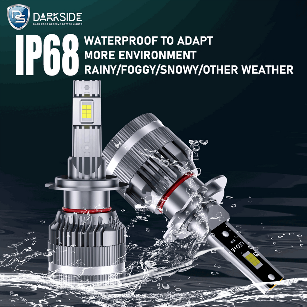 Exceptional Performance Regardless of Weather Conditions: The DARKSIDE LED H1, H3, H4, H7, 9005 LED headlight conversion kit, equipped with IP67 features, excels in challenging weather conditions, ensuring reliable performance in any climate. |